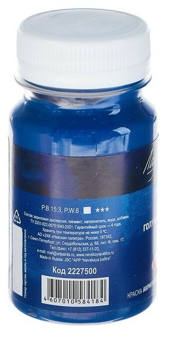 Завод художественных красок «Невская палитра» Краска акриловая художественная «Ладога», 100 мл, голубая «ФЦ» информация: