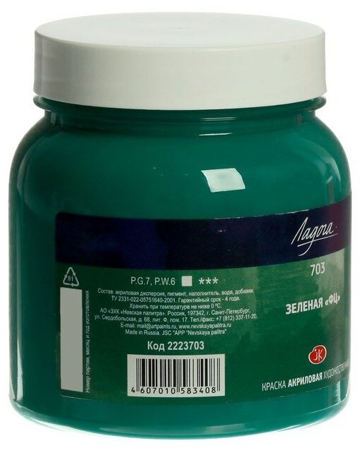 Завод художественных красок «Невская палитра» Краска акриловая художественная в банке 220 мл, ЗХК "Ладога", зелёная "ФЦ", 2223703 1 424 ₽