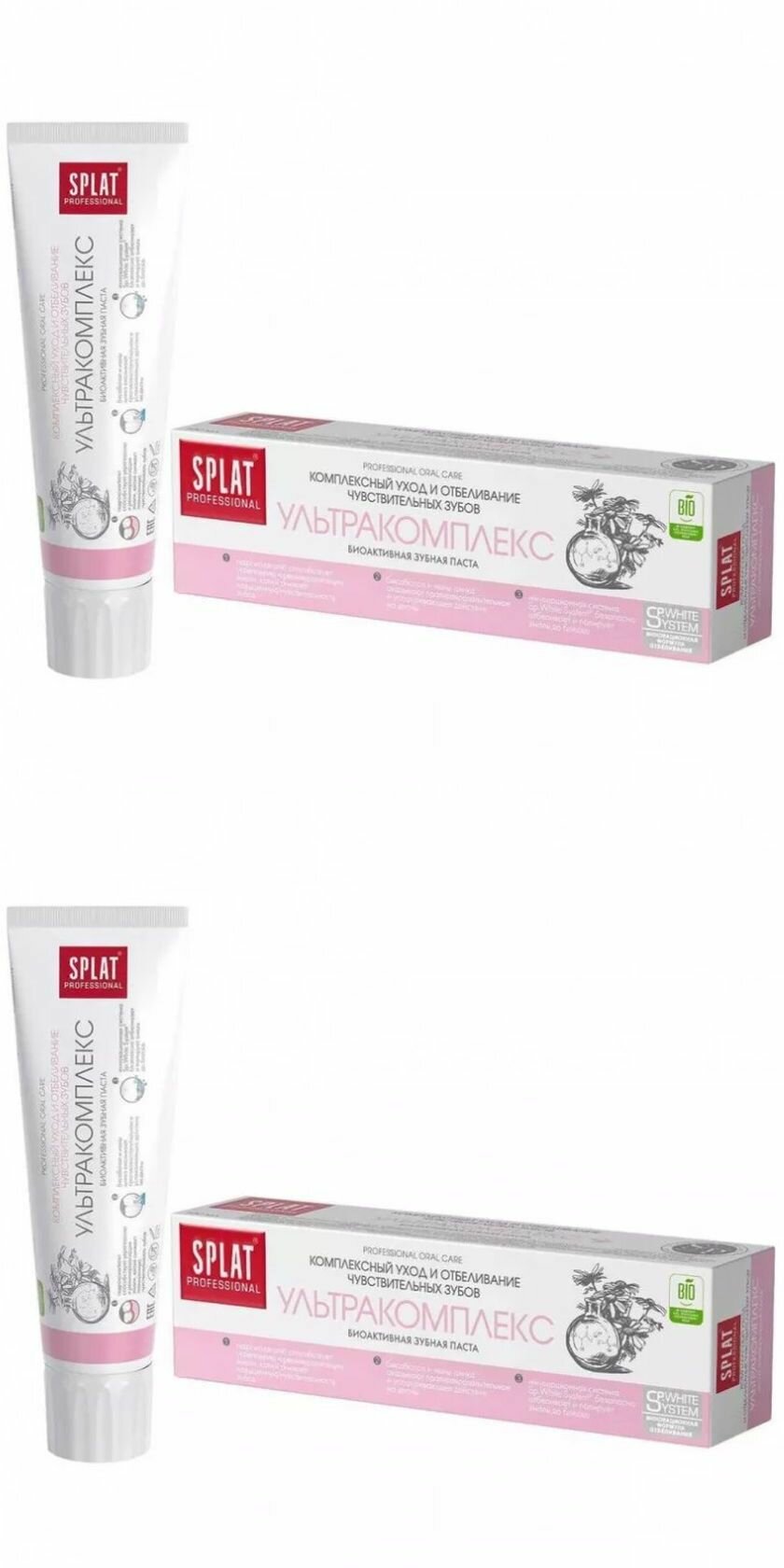 Зубная паста Splat Professional Ультракомплекс, антибактериальная, уход и отбеливания чувствительных зубов, 100 мл х 2 шт