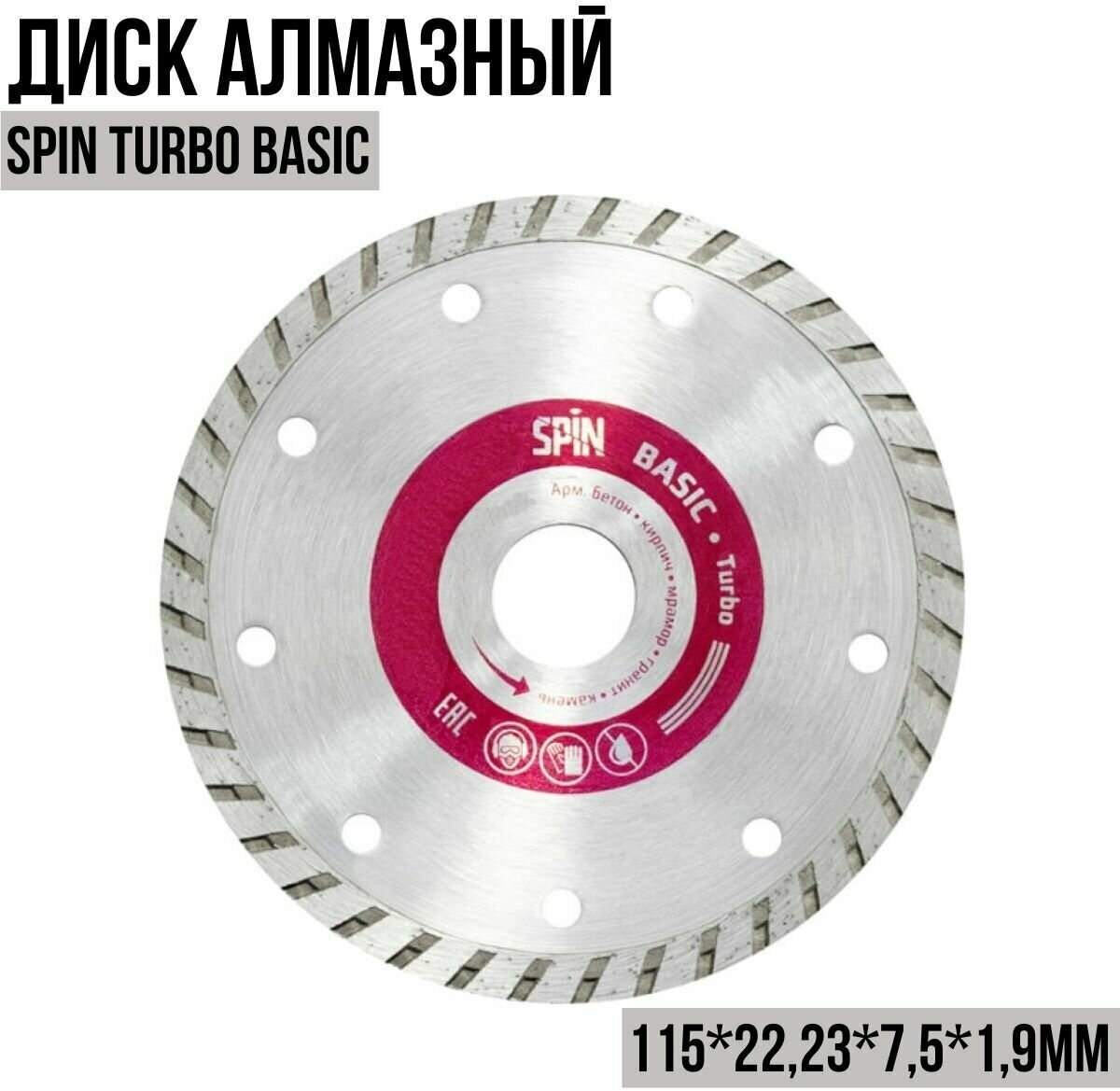 Диск отрезной алмазный по бетону Turbo Basic Spin 115х7,5x1.9мм 771119 информация: