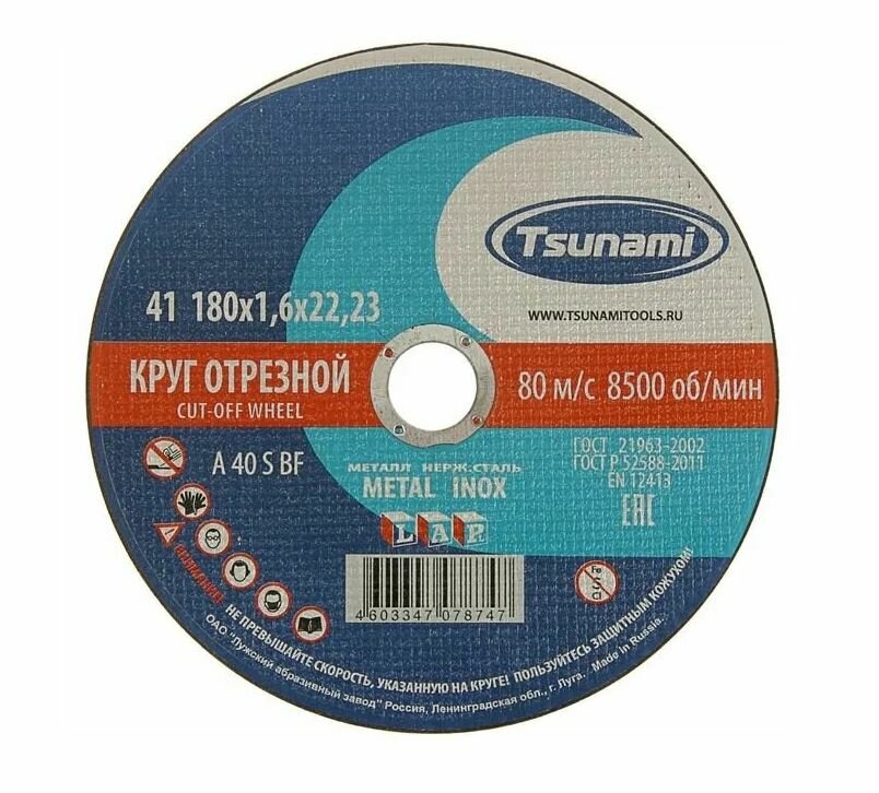 Круг отрезной по металлу TSUNAMI A 40 S BF L, 180 х 22 х 1.6 мм информация:
