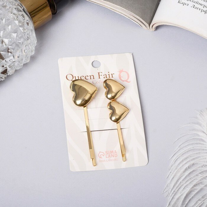 Невидимка для волос Либерти (2 шт) сердечки, 6 см, золото, 1 набор информация: