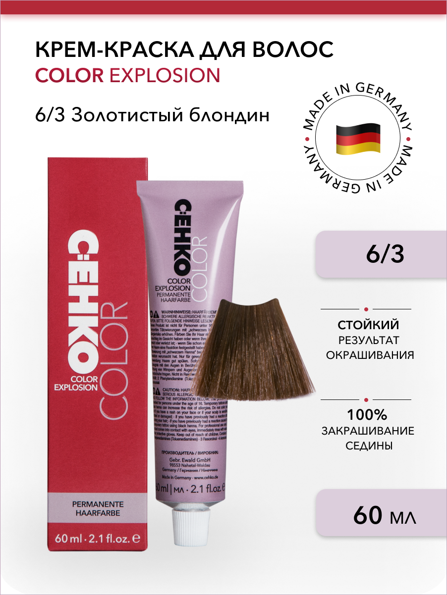 Профессиональная краска для волос 6/3 Золотистый блондин, коричневая, стойкая, перманентная, для седых волос, 60 мл, C:EHKO COLOR EXPLOSION
