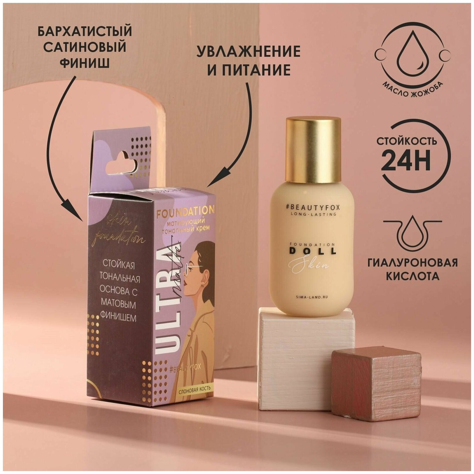 Beauty Fox Тональная основа с гиалуроновой кислотой и маслом жожоба Ultra matte, оттенок 05, слоновая кость, 40 мл
