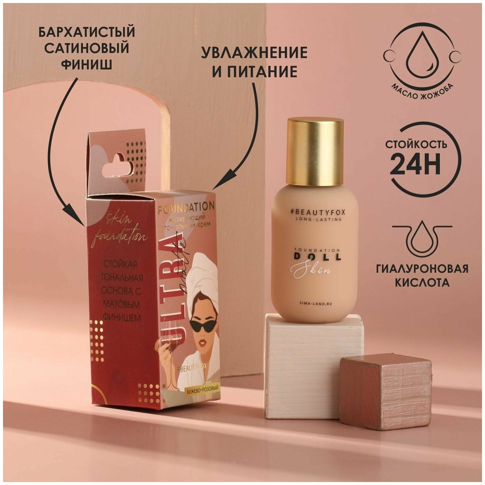 Beauty Fox Тональная основа с гиалуроновой кислотой и маслом жожоба Ultra matte, оттенок 04, бежево-розовый, 40 мл