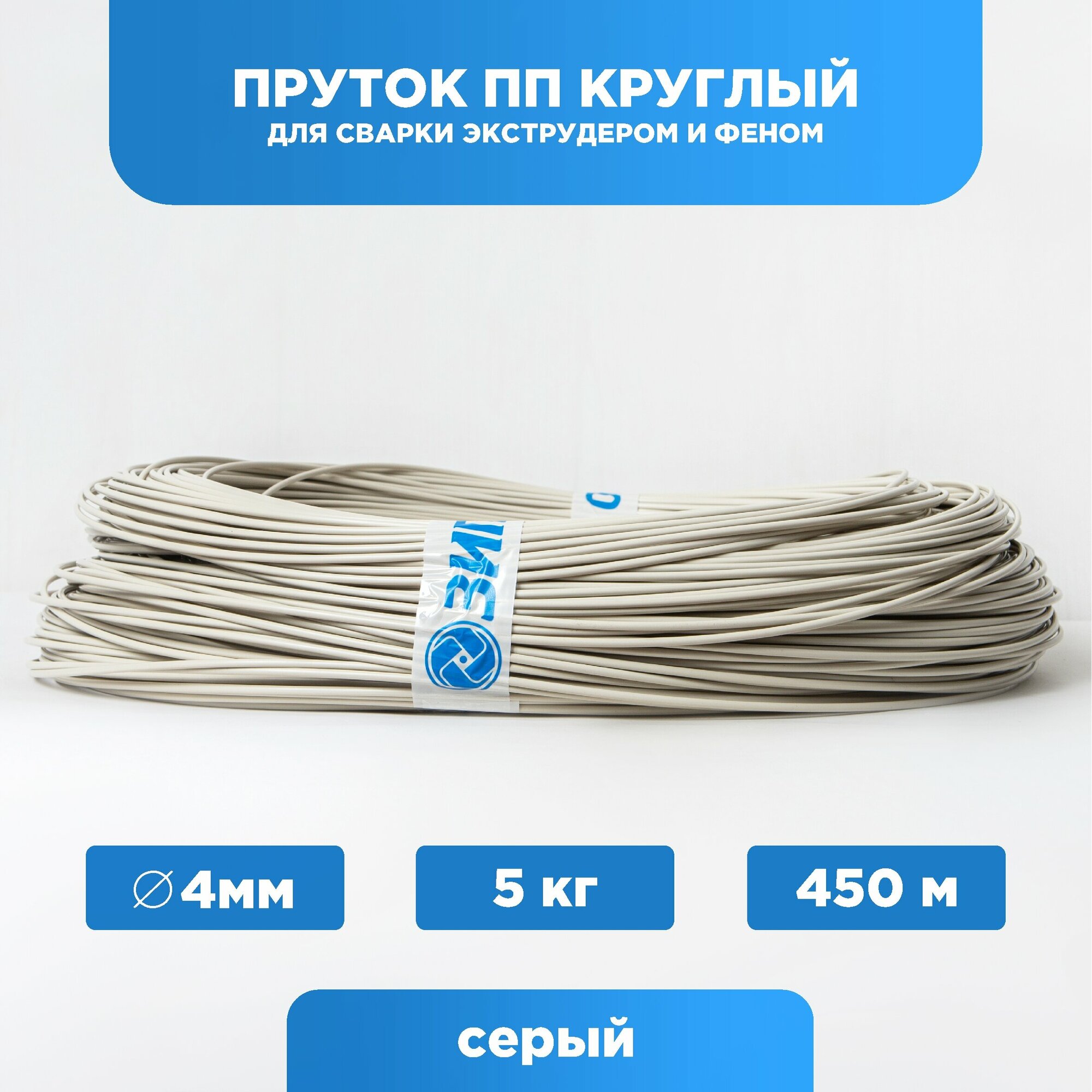 Пруток сварочный ПП (полипропилен) круглый 4мм, серый, в бухте 450 метров, зипо. информация: