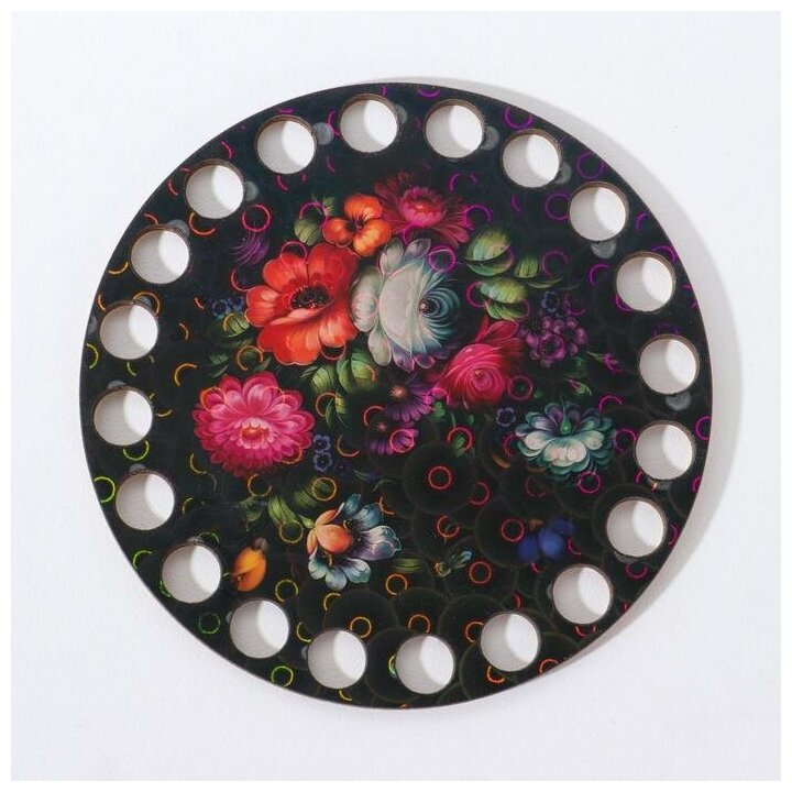 10 цен на Заготовка для вязания "Жостовская роспись №2", донышко фанера 3 мм, 10 см, d=9мм микс./В упаковке шт: 1