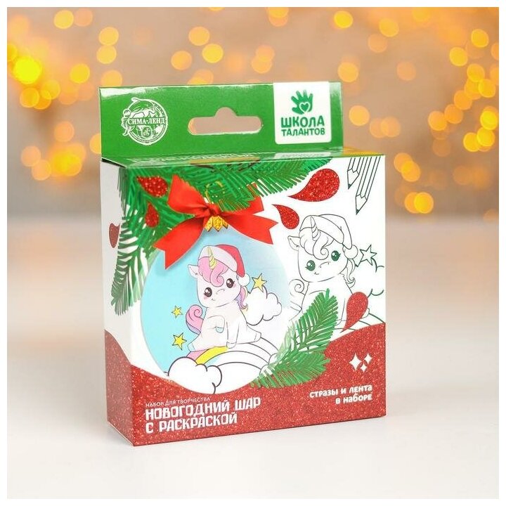 Новогодний шар под роспись Школа талантов с раскраской, Единорог, в коробке информация: