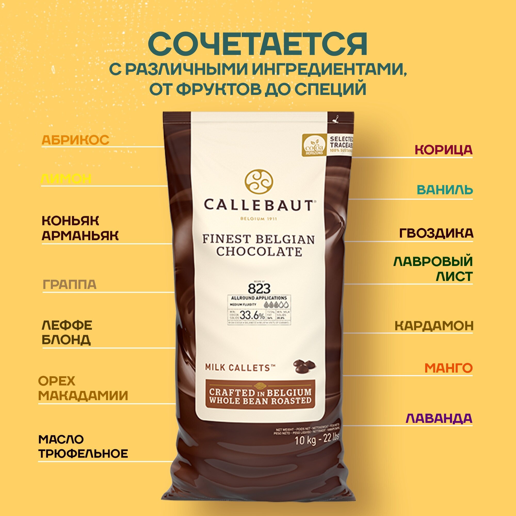 Шоколад молочный Callebaut (каллеты), 33,6%, 2,5 кг №823, 2500 г