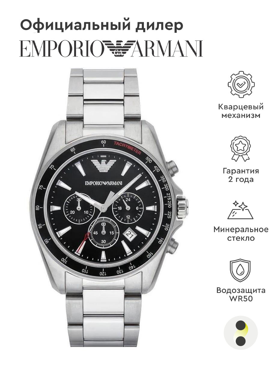 Часы наручные мужские Emporio Armani AR11587 кварцевые на стальном браслете серебристо цвета с минеральным стеклом водонепроницаемостью WR100 (10 атм)