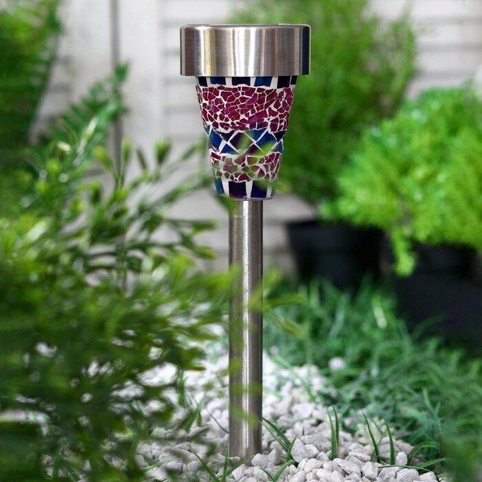 10 цен на Фонарь садовый на солнечной батарее "Витраж фиолетовый", 38.5 см, d=7.5 см, 1 led, металл