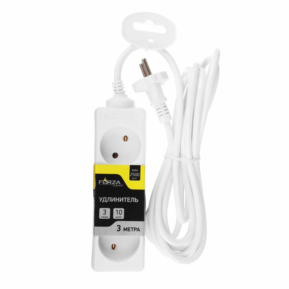 Отзывы на FORZA Удлинитель 3 гнезда, сеч. провода 1 кв.мм 3м, 10A, макс. мощность 2500Вт
