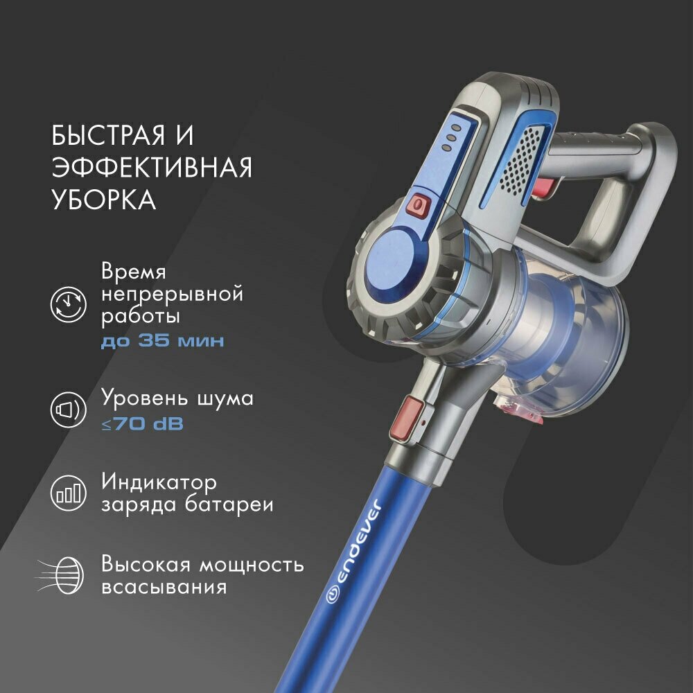 Беспроводной вертикальный пылесос для дома Endever VC-303 / синий