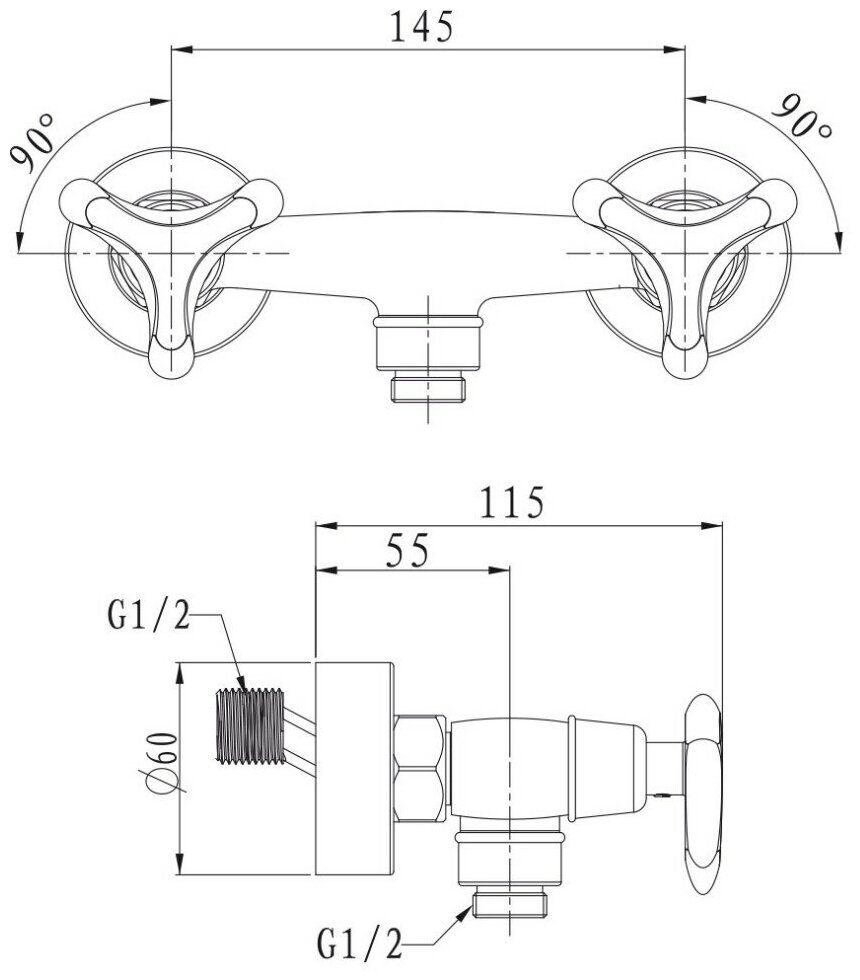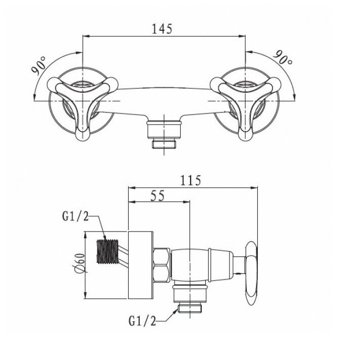 Смеситель на раковину настенный Эверест B46-350 с круглым поворотным изливом, кран-буксы 1/2", хром