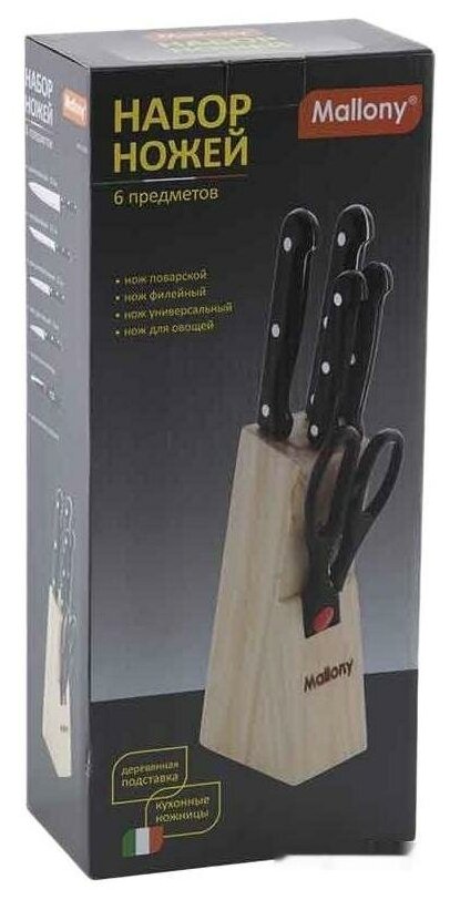 Набор ножей 6 предм MAL-S02B (4 ножа, ножницы), ручки пластик Mallony информация: