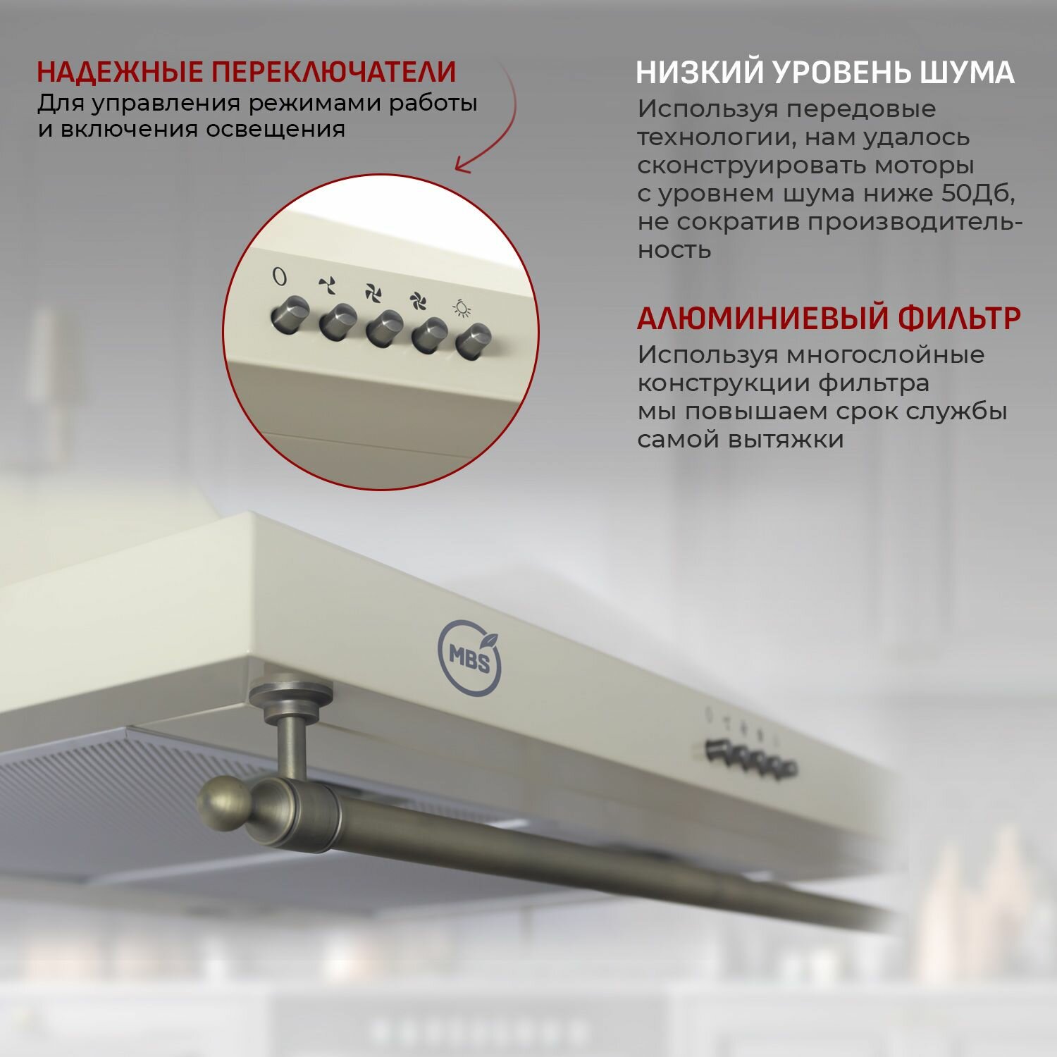Кухонная вытяжка MBS MAGNOLIA 160 IVORY/60 см/производительность 800м3/ч, низкий уровень шума. 17 010 ₽