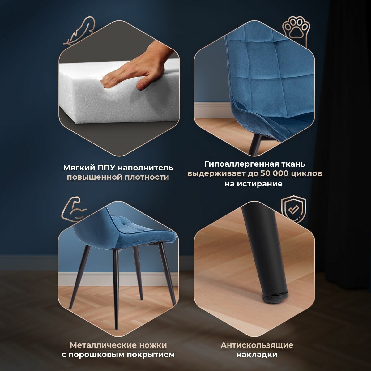 Комплект стульев для кухни TetChair ABRUZZO ( mod. 8060) со спинкой, 4 шт., вельвет, синий/черный