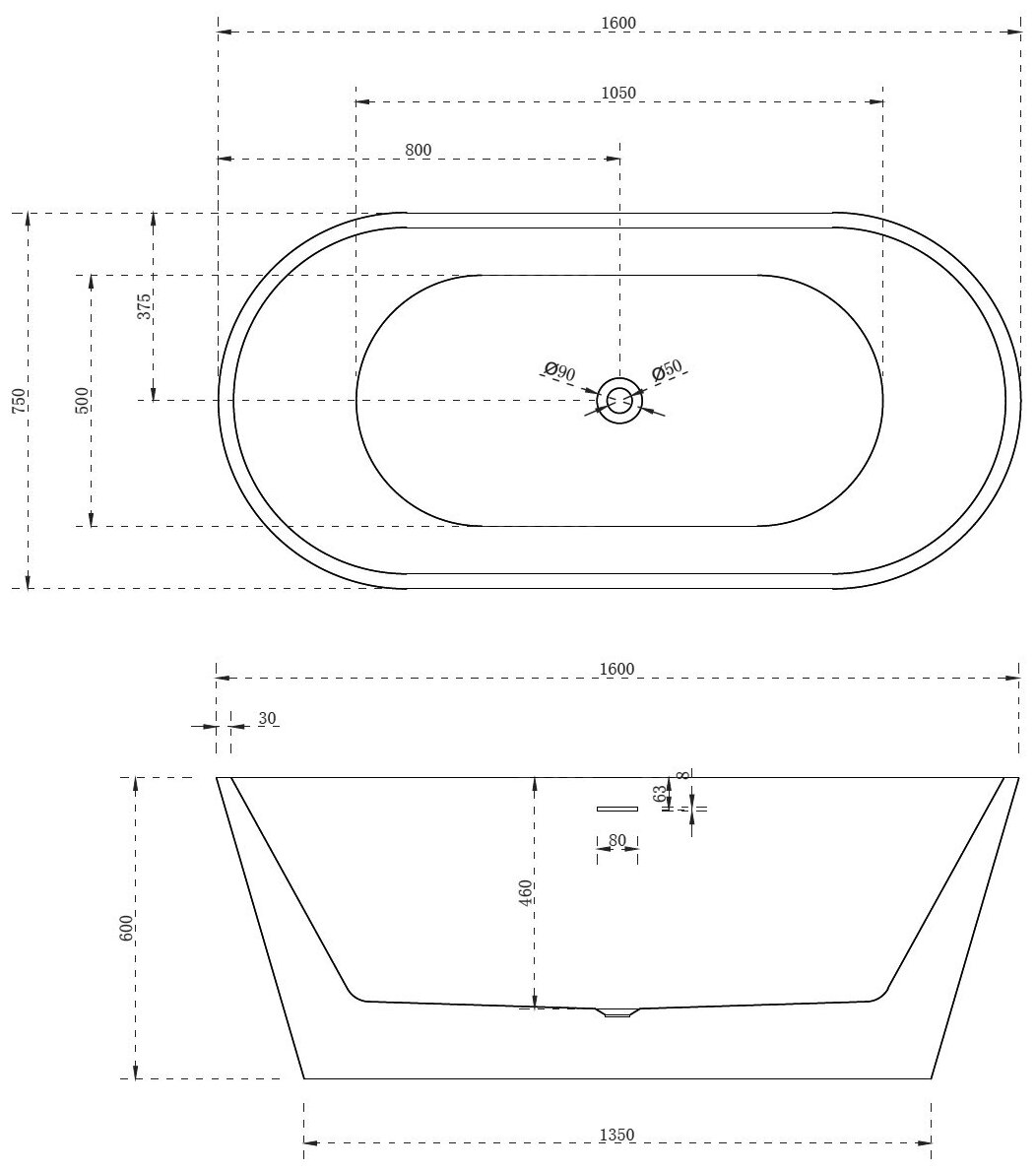 Ванна Ceruttispa COMO150 акриловая (1500x750x560) отдельностоящая, белая