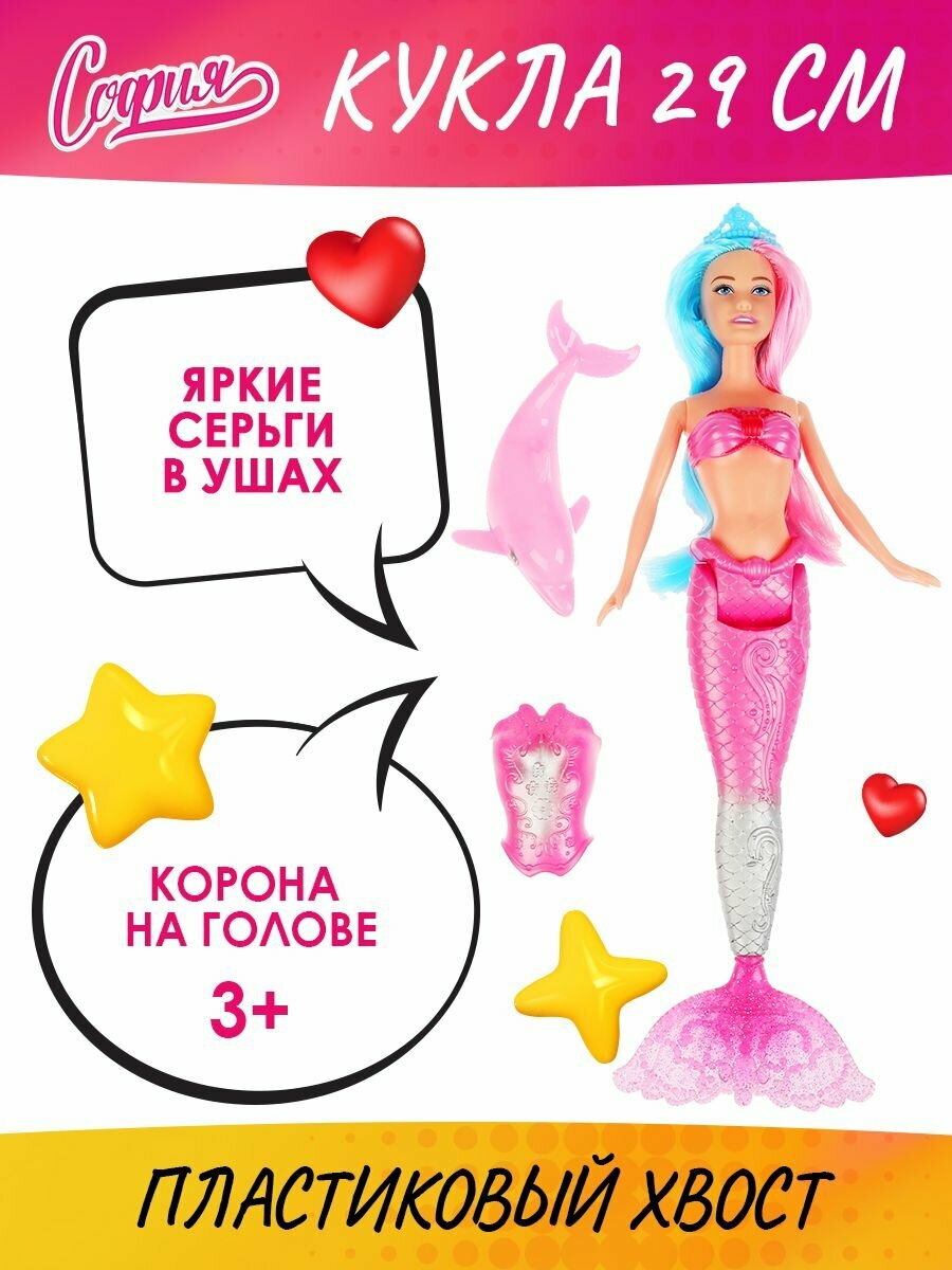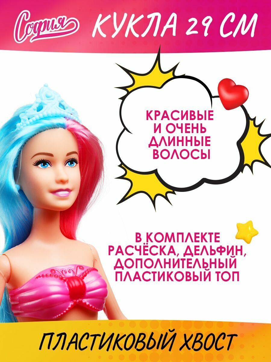 Кукла-русалка софия 29 см, двухцветные волосы, сменный топ, дельфин, расчёска карапуз 66001M-D1-S-BB