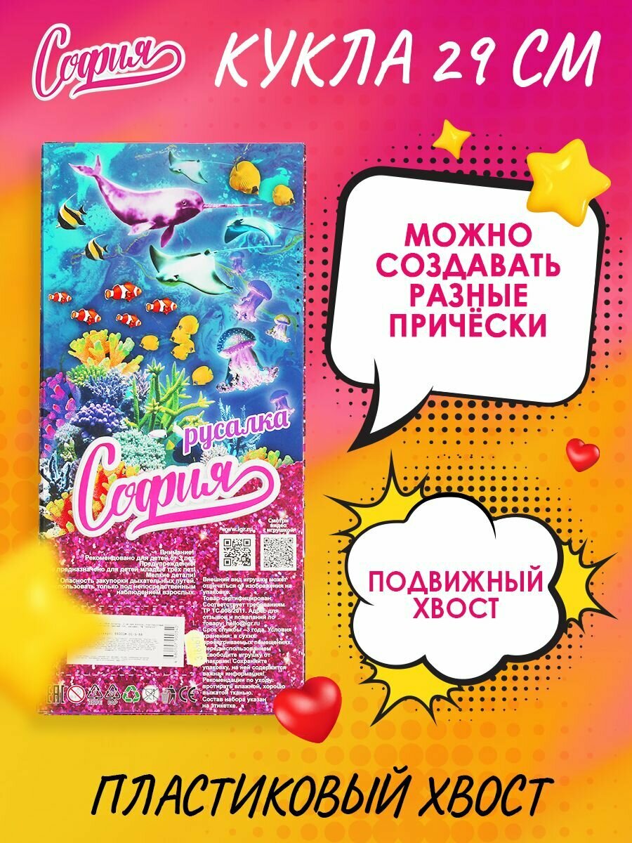 Кукла София русалка пластиковый хвост + аксессуары в комплекте