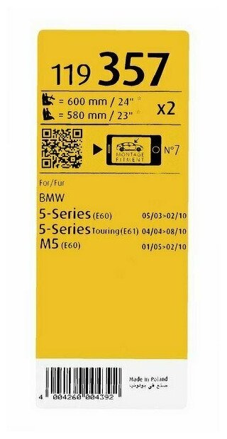 | Совместимость | BMW: Serie 5 [E60] 07.2003-02.2010, Serie 5 Touring [E61] 05.2004-08.2010, Serie M [E60, E63] 11.2004-03.2010, Serie M Cabrio [E64] 11.2006-07.2010 |