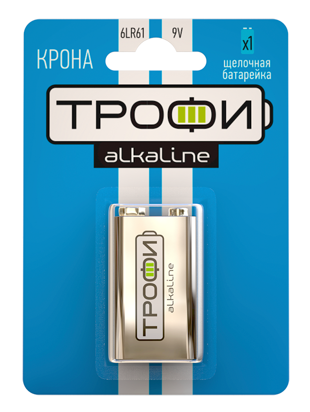 Элемент питания алкалиновый «крона» 6LR61-1BL (блист.1шт) Трофи C0034928