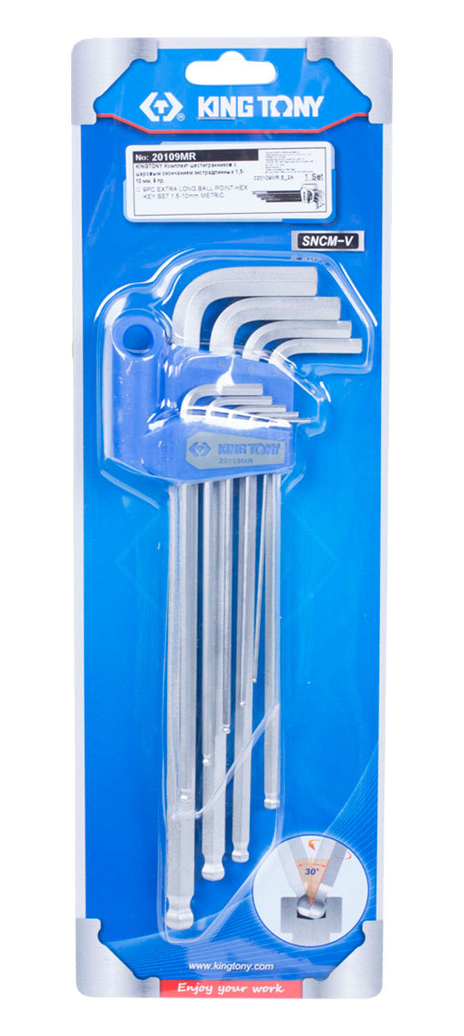 Набор Г-образных шестигранников 1,5-10 мм, длинные, с шаровым окончанием, 9 предметов KING TONY 20109MR