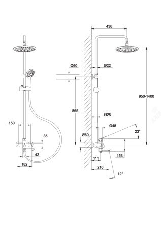 | Дополнительная информация | высота стойки для душа: 1400 мм; диаметр верхнего душа: 200 мм |