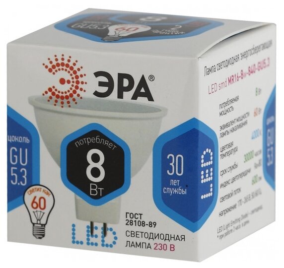 10 цен на Лампа светодиодная Эра LED smd MR16-8w-840-GU5.3(10/100/4000)
