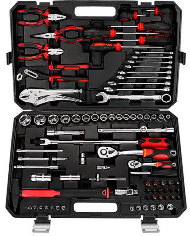 Набор инструментов для автомобиля Goodking 86 предметов 1/2" 1/4" 3/8" трещотка, динамометрический ключ, отвертки, торцевые головки, биты, плоскогубцы, гаечные ключи