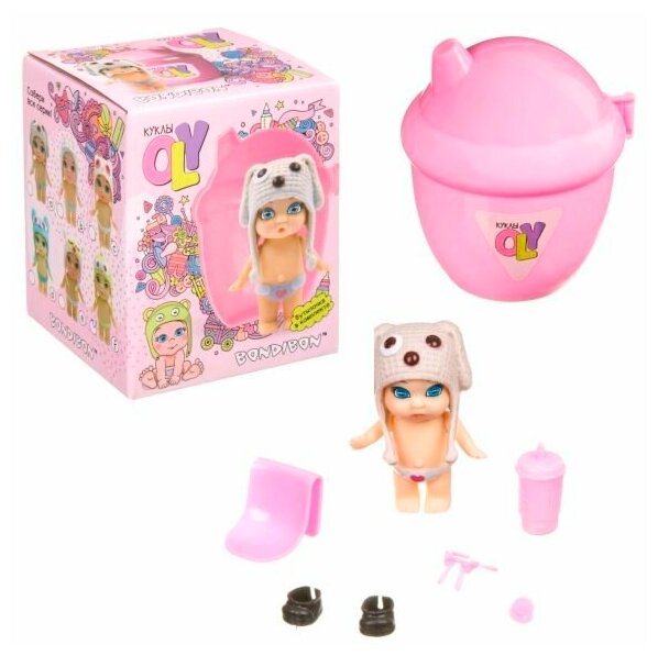 Куколка Bondibon Oly, в шапочке-ушанке, с аксессуарами, в поильнике (ВВ3852) информация: