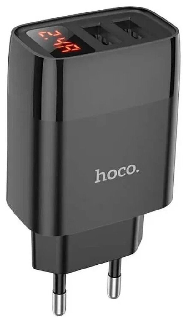Сетевое зарядное устройство Hoco C86A Illustrious с дисплеем, dual USB, 2.4A, черный