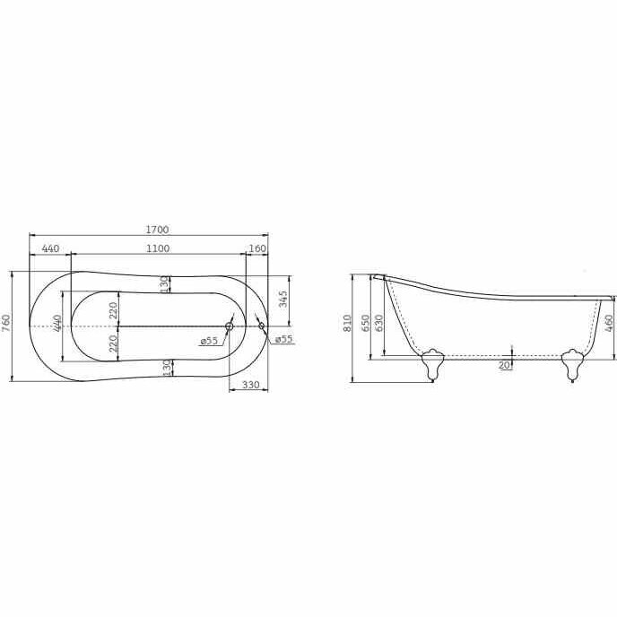 Ванна чугунная Provokateur Agate 160х70 с отверстиями под ручки