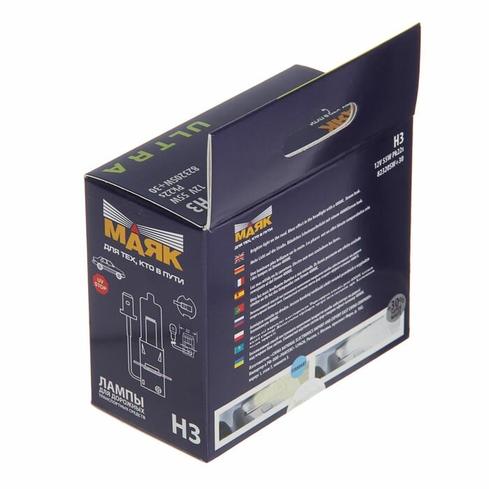 Лампа автомобильная Маяк Ультра Super White +30%, H3, 12 В, 55 Вт, набор 2 шт информация: