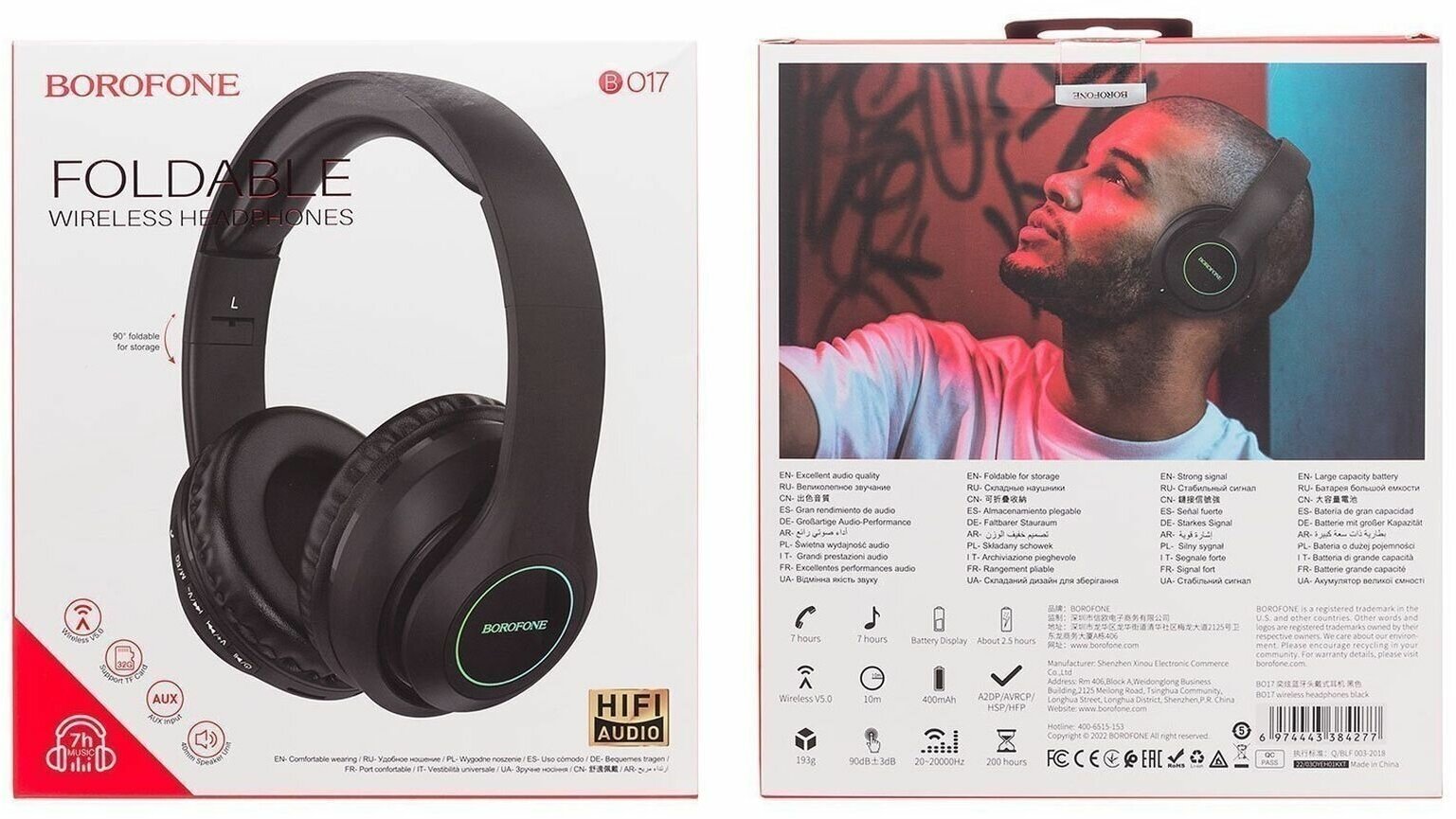 Стереонаушники Bluetooth Полноразмерные Borofone B017 Foldable V5.0/7ч черный