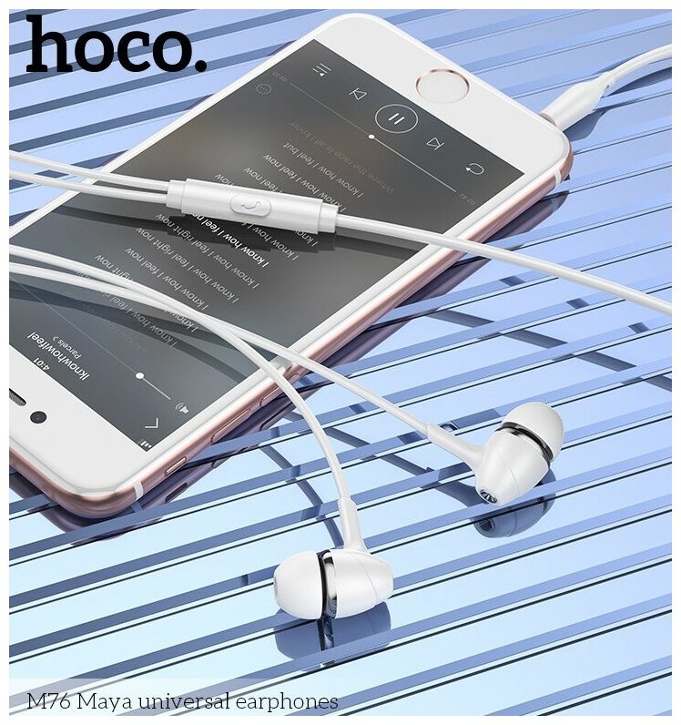 Наушники M76 Maya universal earphones, HOCO, вакуумные с микрофоном, белые