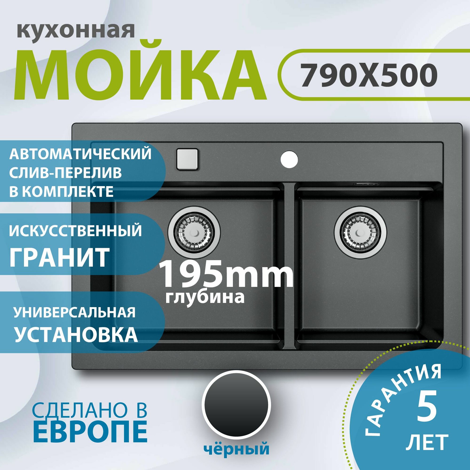 Кухонная мойка Alveus Granital Atrox 50 Carbon-G91 790х500х195 с сифоном, черная (1132002)