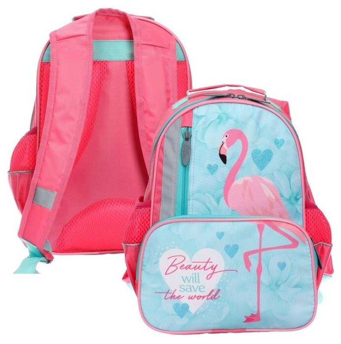 Calligrata Рюкзак школьный, 37 х 26 х 13 см, эргономичная спинка, Calligrata ОРТ "Фламинго"