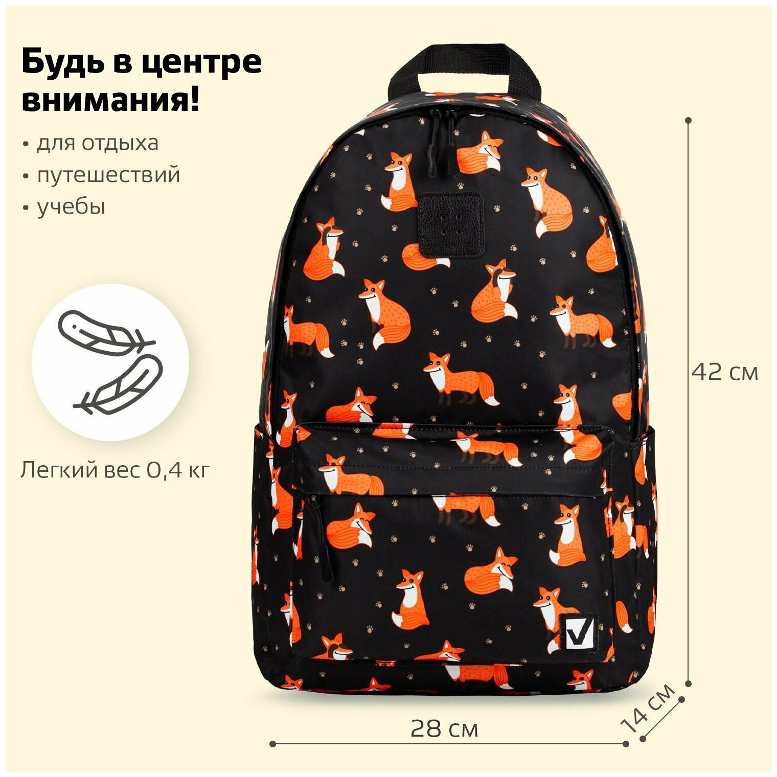10 цен на 270779, Рюкзак BRAUBERG POSITIVE универсальный, потайной карман, "Sly foxes", 42х28х14 см, 270779