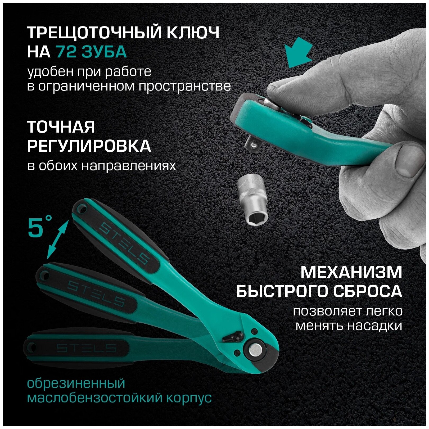 Для слесарных, ремонтных и точных работ Stels Набор инструментов, 1/4", 3/8", 1/2", Cr-V, S2, усиленный кейс, 151 предм., Stels, 151 предм., серебристый/черный