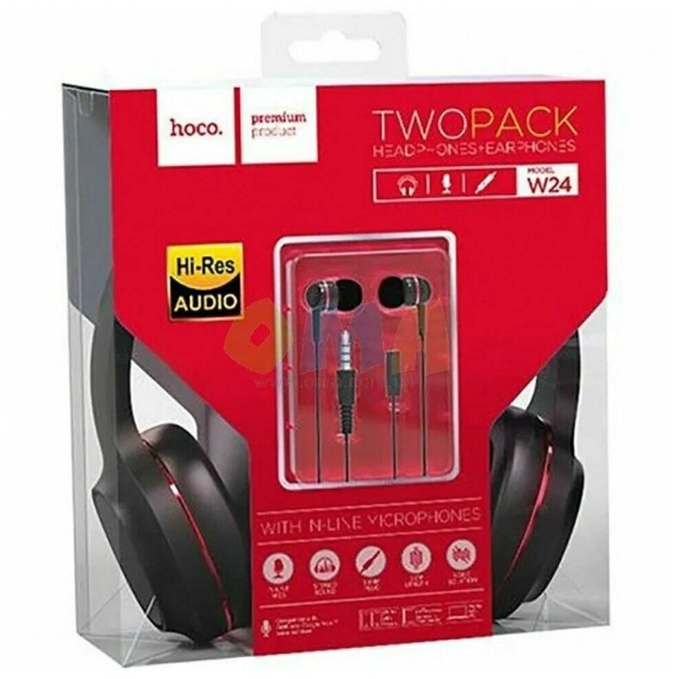 Комплект наушники с микрофоном Hoco W24 полноразмерные и наушники вкладыши, черно-красные