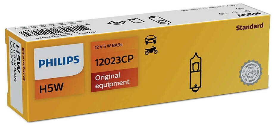 PHILIPS 12023CP лампа галогенная 10ШТ В упаковке H5W 12V 5W BA9S