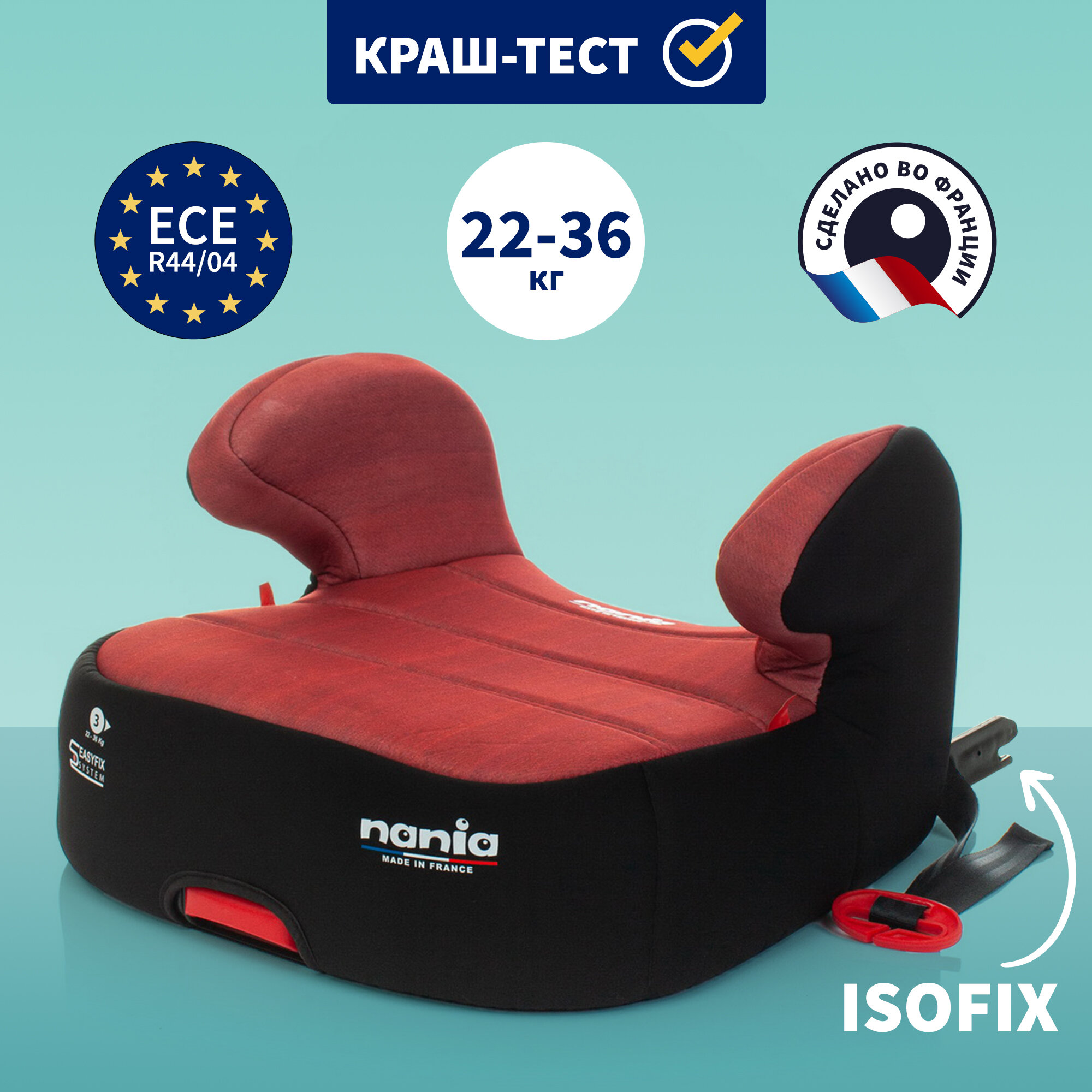 Детское автокресло - бустер автомобильный DREAM EASYFIX Denim Luxe Red от 6 до 12 лет, 15-36 кг, красный информация: