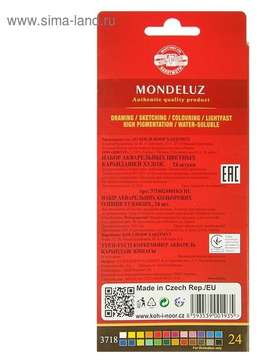 KOH-I-NOOR Карандаши акварельные Mondeluz, 24 цвета (3718024001KS) информация:
