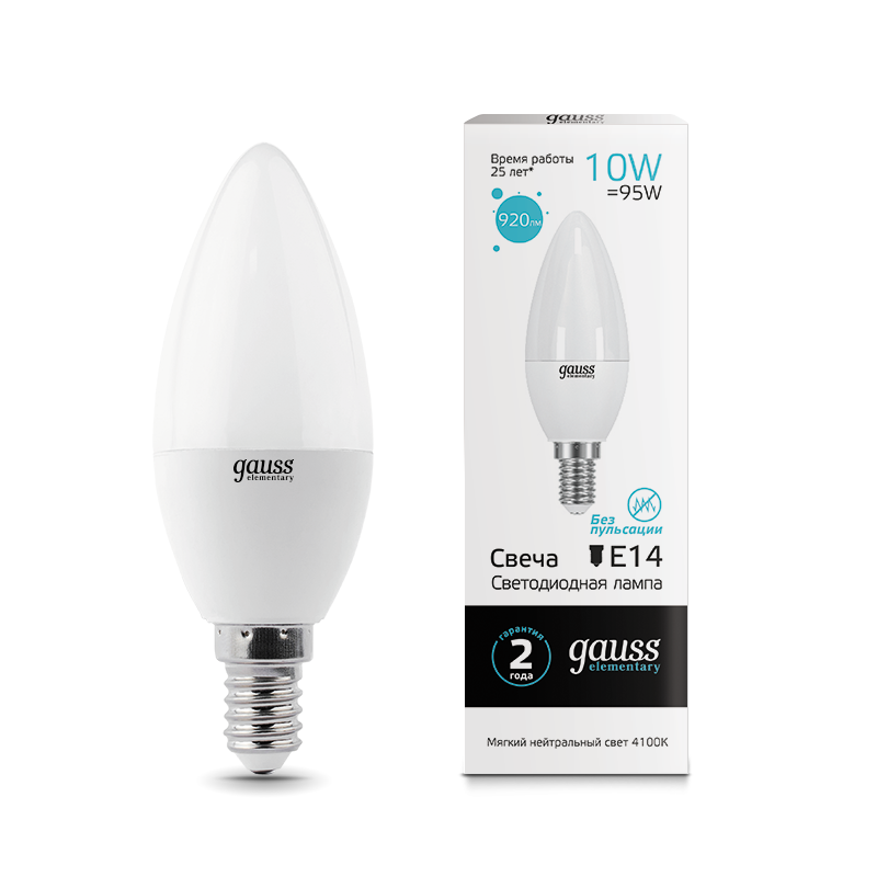 10 цен на Лампочка GAUSS Elementary свеча 10W E14 4100K 33120