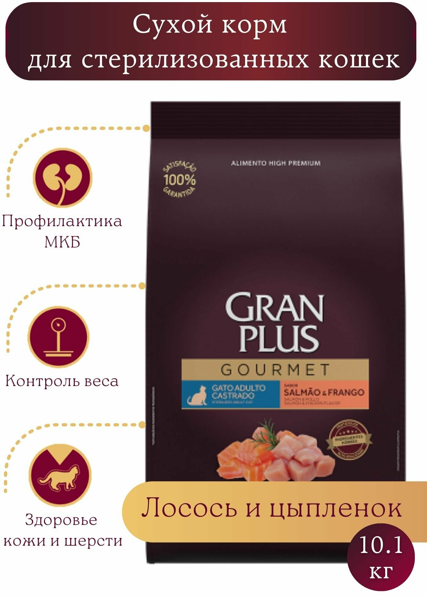 Granplus Gourmet Cat Sterilised сухой корм для взрослых стерилизованных и кастрированных котов и кошек лосось и цыпленок - 10,1 кг