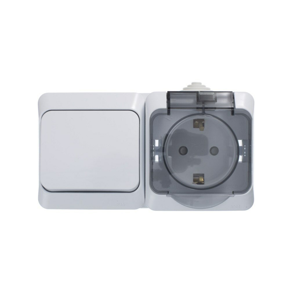 10 цен на Блок ОП Этюд (1-кл. выкл. + евророз. защ. шторки) IP44 бел. SchE BPA16-241B