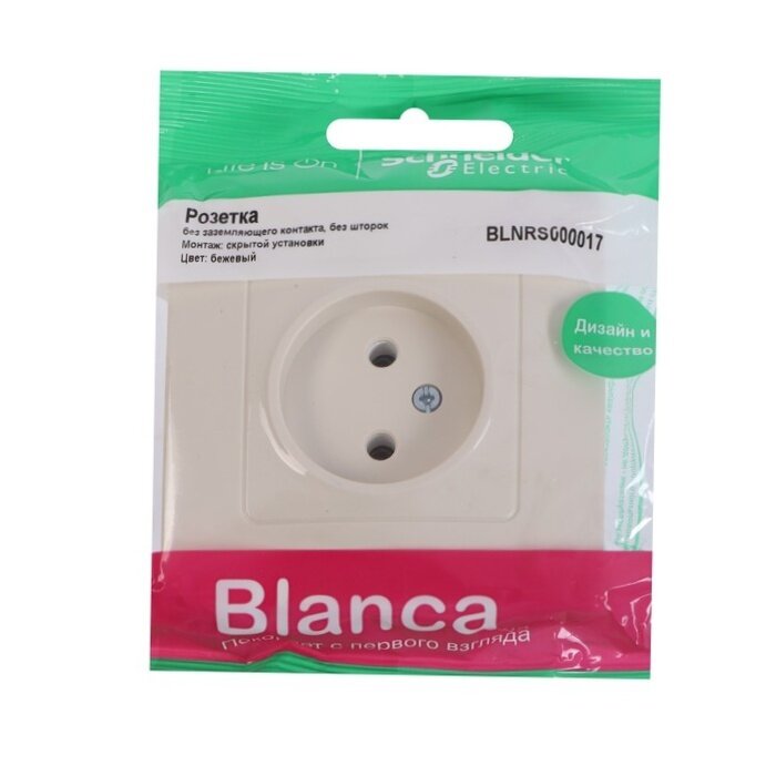 Отзывы на Розетка 1-м СП Blanca 16А IP20 250В без заземл. без защ. шторок беж. SchE BLNRS000017 (5шт.в упак.)