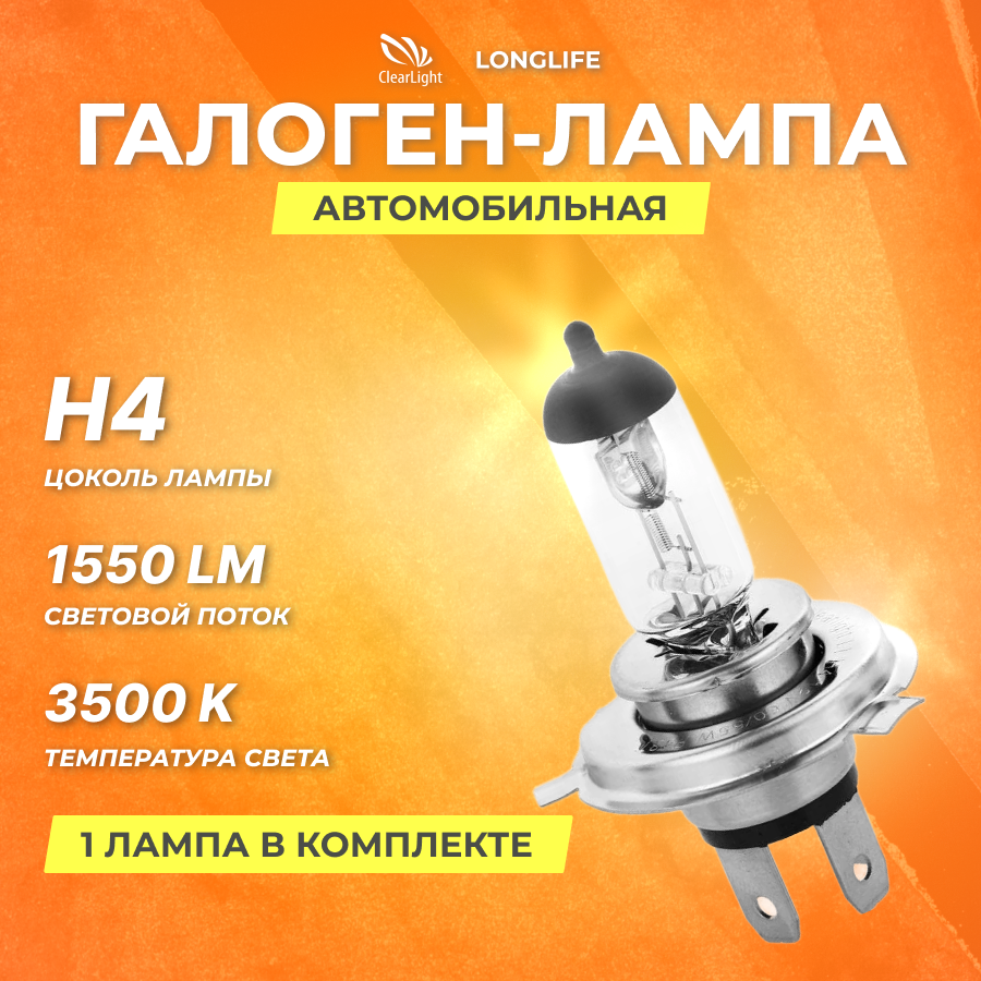 Лампа автомобильная Clearlight LongLife, H4, 12 В, 60/55 Вт информация: