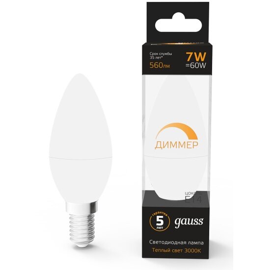 Отзывы на Лампа светодиодная gauss Диммер 103101107-D, E14, C38, 7 Вт, 3000 К